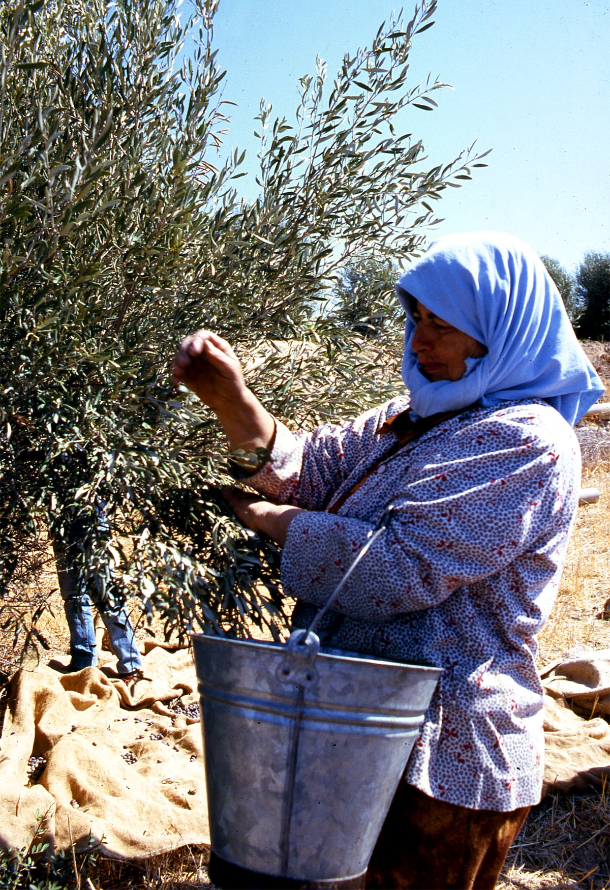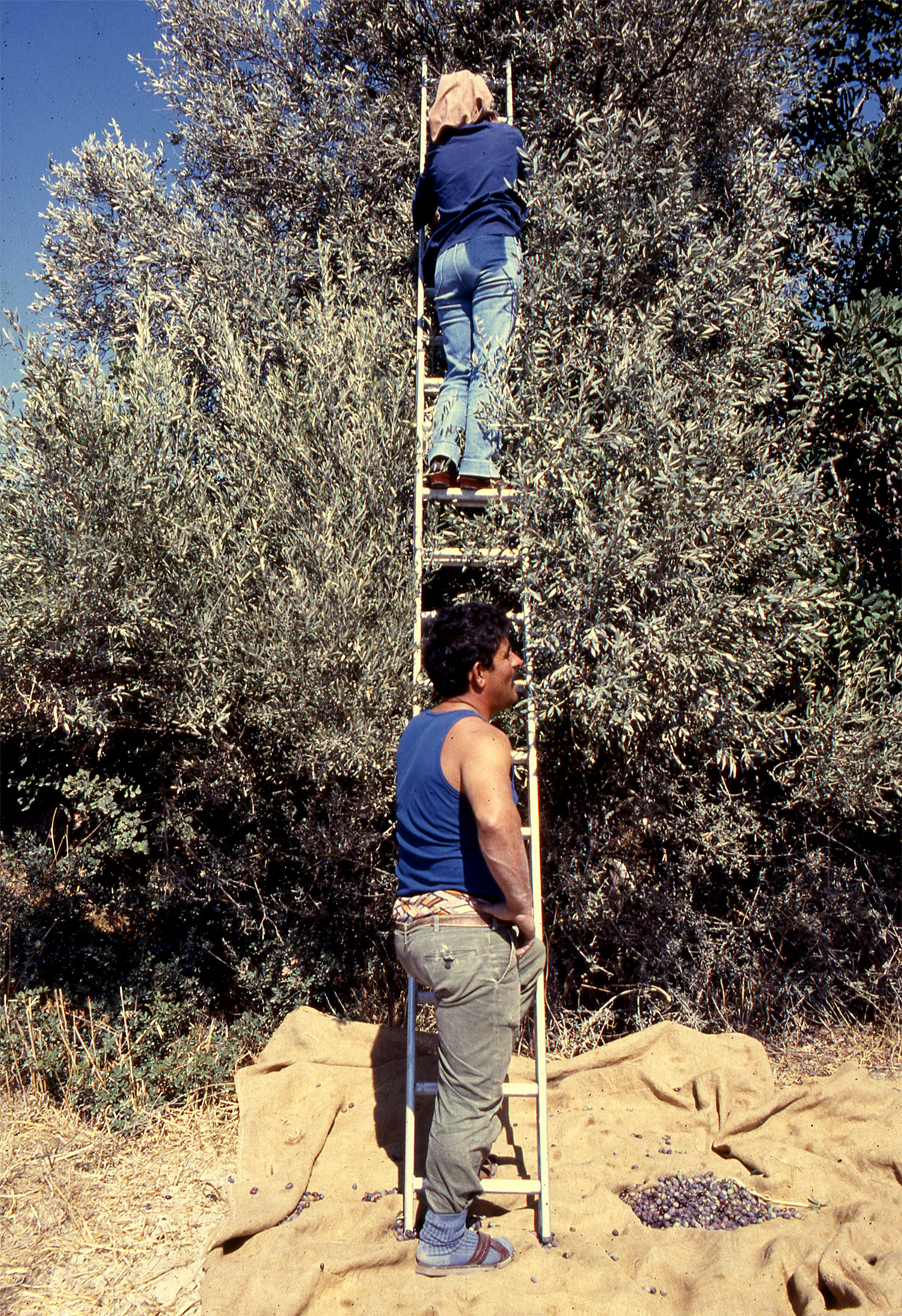 October, 1990: Olive harvesting outside Trakhypedoulas Village, Dhiarizos Valley, Paphos District.